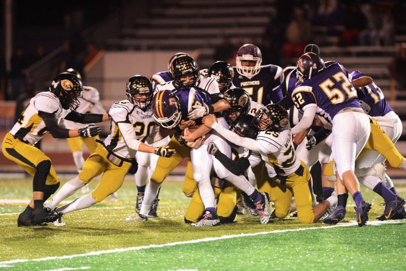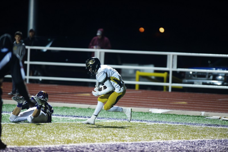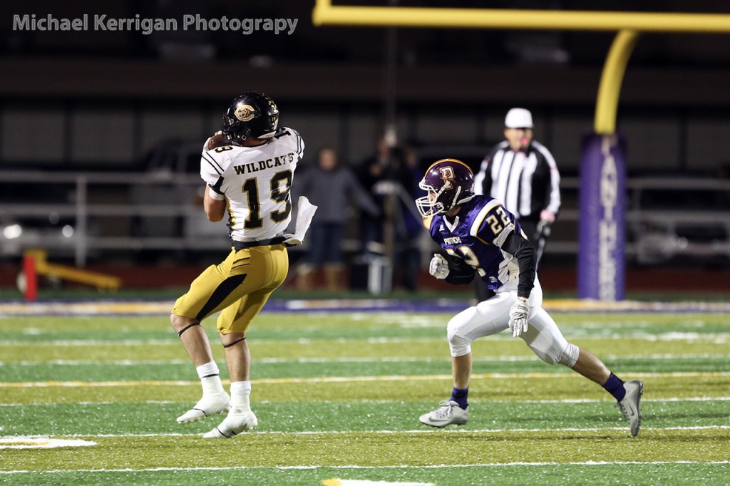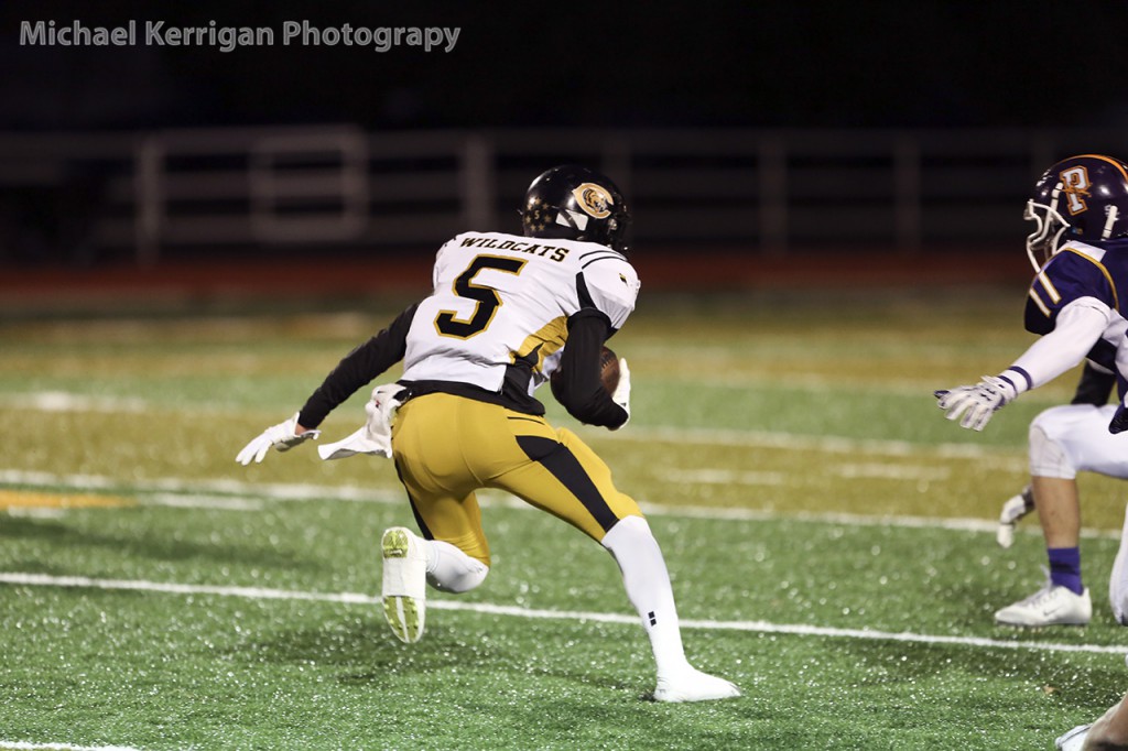 This particular night will be remembered for quite some time as the “big night Cameron had” by many Canadian Wildcat fans. WR/DB Cameron Copley took full advantage of every error he could capitalize on that the Panthers would give him on either side of the ball, scoring three TDs via pass receptions and another TD on a pick-six INT from his DB position on the Wildcat defense. Copley opened up the first half of Canadian’s scoring on an 18 yard TD reception from QB Tanner Schafer (19- 21-0 for 300 yards, 5 TDs). RB Chance Cook reeled in the next Schafer pass from 25 yards out ending the scoring in the first quarter. But the tidal wave of Canadian points hit shore in the second quarter with five TDs. RB Chance Cook stepped into the end zone untouched from the 3 yard line, WR/DB Copley returned an INT 22 yards, WR Manny Ramsey received an 8 yard TD pass from Schafer, and WR Copley burned the Panhandle defense two more times before the half with TD passes from Schafer. Copley’s last two reception TDs were a 24 yarder and a 58 yard sprint down the visitors sideline outrunning every available Panhandle Panther after catching Schafer’s fast ball on the quick out reception.