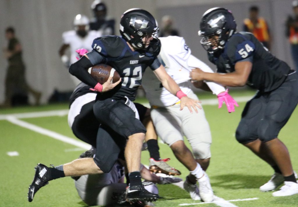 The Hawk defense contributed heavily towards the win, controlling momentum the majority of the game. The Hawk defense limited the dynamic Stony Point offense that came in averaging over 40 points, and nearly 270 rushing yards per game, to just 22 points and 84 rushing yards on 31 attempts (2.7 YPC). This marked the first time all season the Tiger offense had less than 200 yards rushing, with their leading rusher, junior WR Tyler O’Bannon, pitching in 53 of the 84 yards on 8 carries.