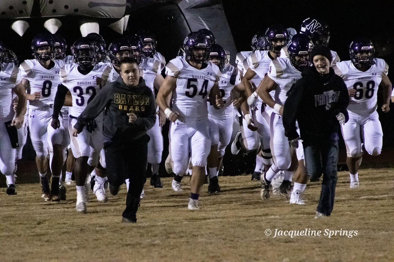 Geronimo Navarro went to Bandera to play for the outright District Championship. Bandera came in with an 8-1 record and Navarro at 9-0. It was a slugfest that was not decided until the last minute of the game. Navarro won 41-38 and amassed 491 yds rushing with Euler DeLeon rushing for 221 yds and Johnny Alegria rushing for 170 yds. Alegria scored the go-ahead TD on a 62 yd run with 1:20 seconds left. Navarro forced a fumble with 45 seconds to secure their 3rd undefeated regular season in the last 5 years. Also this is the 8th 10 win season in a row!