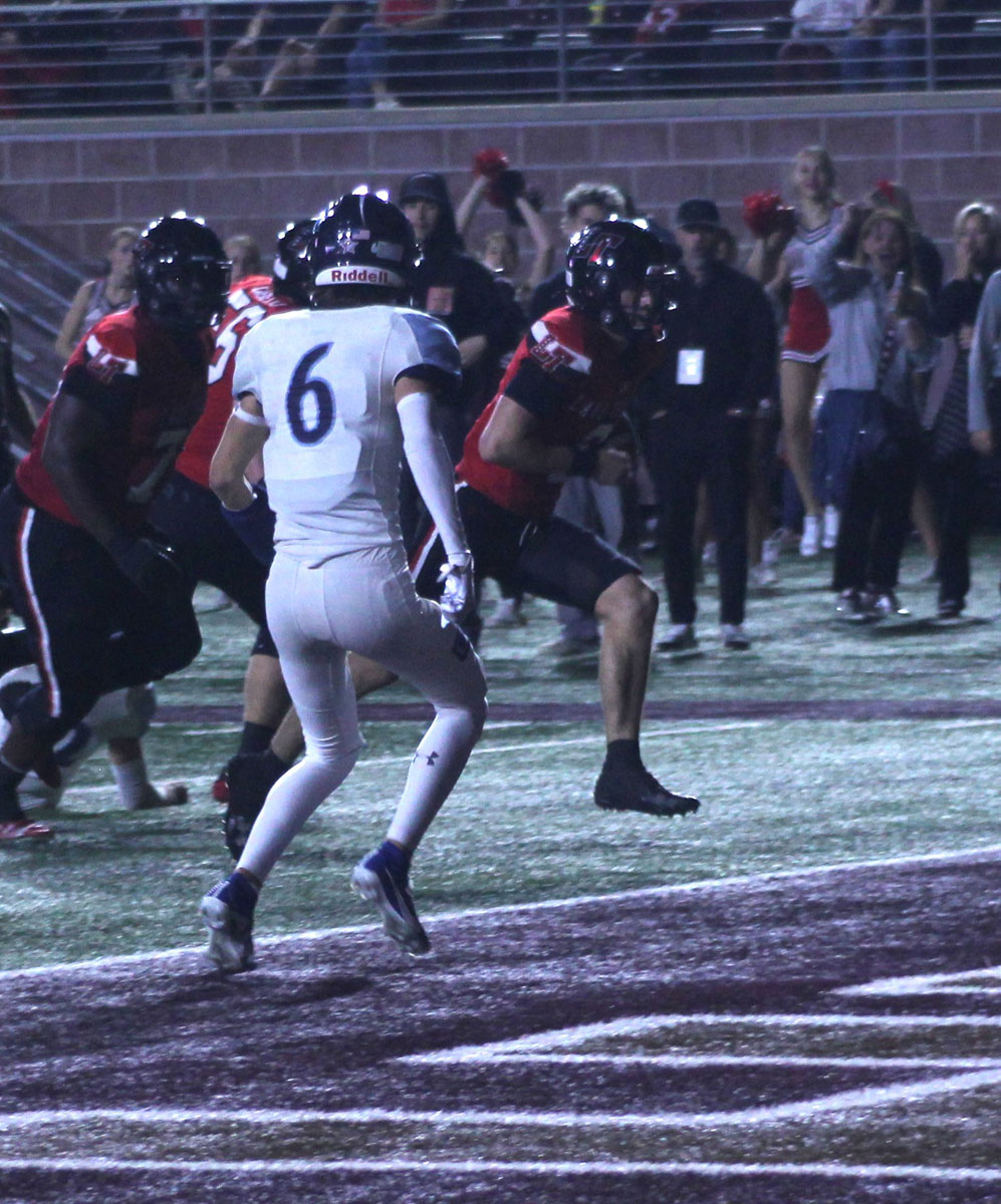 Finally in the second quarter, the Jaguars managed to get on the board. Ty Hawkins connected with receiver Gabriel Simpson for a 27-yard touchdown pass, but the Cavaliers stole the momentum back on the following drive. Lake Travis started the drive with excellent field position, and quarterback Chaston Ditta capped off the drive with a 12-yard touchdown scramble. For the rest of the half, it was déjà vu for the Johnson offense. Lake Travis linebacker Everett Underhill and defensive backs Walker Moore and Josiah Estes ended all three of Johnson’s drives with interceptions. Nico Hamilton also scored his third touchdown of the night following Underhill’s interception.