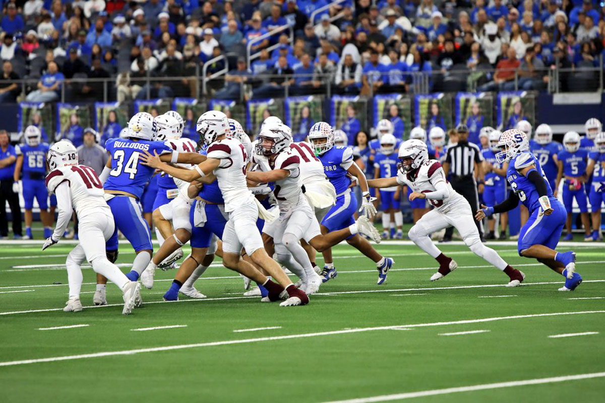 ARLINGTON, TX - In an unforgettable Texas high school football battle, the Ganado Indians edged out the Stamford Bulldogs 30-28 in a dramatic triple-overtime finish during the 2024 Texas Class 2A Division 1 matchup at AT&T Stadium. The game featured intense back-and-forth action that kept fans captivated until the final whistle.