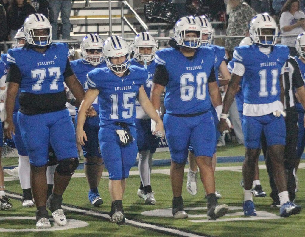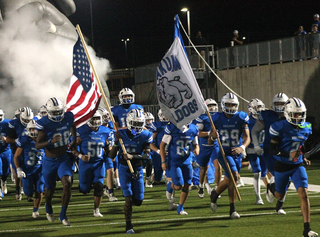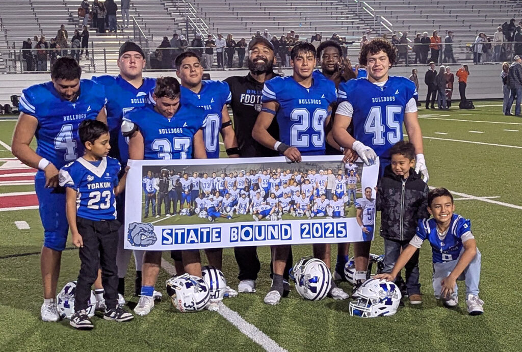 For the first time since 2016, the Yoakum Bulldogs are going to state. The Bulldogs punched their ticket to Arlington Friday night at the Pfield with a 71-27 drubbing of the Llano Yellowjackets. The Bulldogs dominated both sides of the ball, and Llano had no answer for the Bulldogs’ speed on offense.